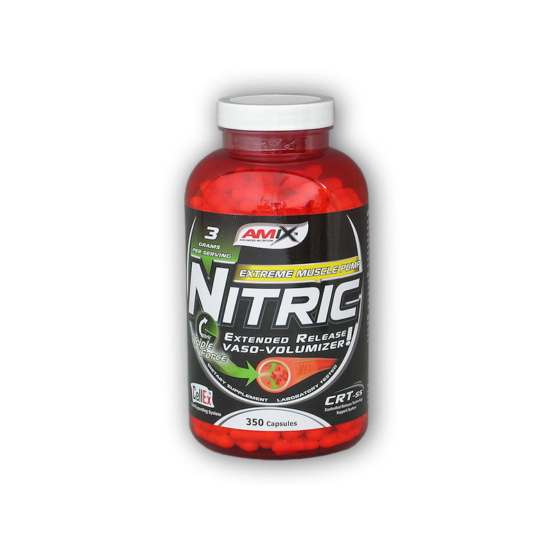 obsahuje: Nitric Triple Force Complex, citrulín malát, želatínová kapsula, stabilizátor: hydroxypropylmetylcelulóza (Methocel®), betaín hydrochlorid, protihrudkujúce látky: stearan horečnatý, oxid kremičitý Nitric Triple Force Complex - L-arginín-alfa-ketoglutarát, L-arginín etylester hydrochlorid, L-arginín-alfa-ketiokyanát