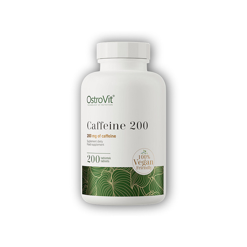 OstroVit Kofeín v tabletách VEGE 200 mg je kvalitný doplnok stravy, ktorý je zdrojom kofeínu. Je to produkt dostupný vo forme ľahko prehĺtateľných tabliet, vytvorený pre ľudí, ktorí chcú stimulovať telo a doplniť svoju každodennú stravu o cennú zlúčeninu.