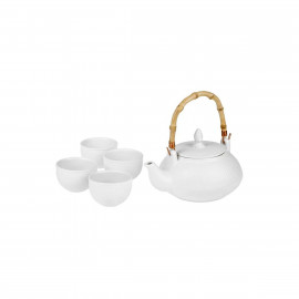 Džbán má veľmi pohodlnú bambusovú rukoväť. Súprava sa vyznačuje jemným, reliéfnym vzorom. Celé je to vyrobené z porcelánu v univerzálnej bielej farbe.