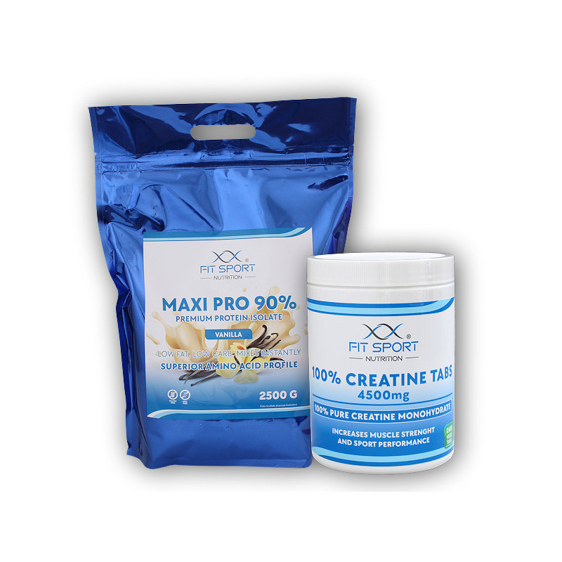 Maxi Pro 90% 2500g + 100% Creatine Tabs 4500mg 240 vegetariánskych tabov - kokosová biela čokoláda