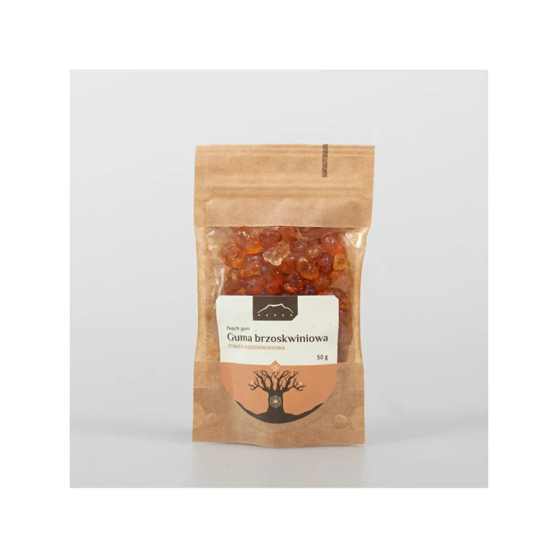 Broskyňová živica, nazývaná aj „broskyňové slzy“ alebo broskyňová guma, sa získava z čínskych broskyňových stromov. Pri rezaní stromu vyteká, potom stvrdne a následne sa zbiera. Jeho hrudky sú priehľadné a majú jantárovú farbu.