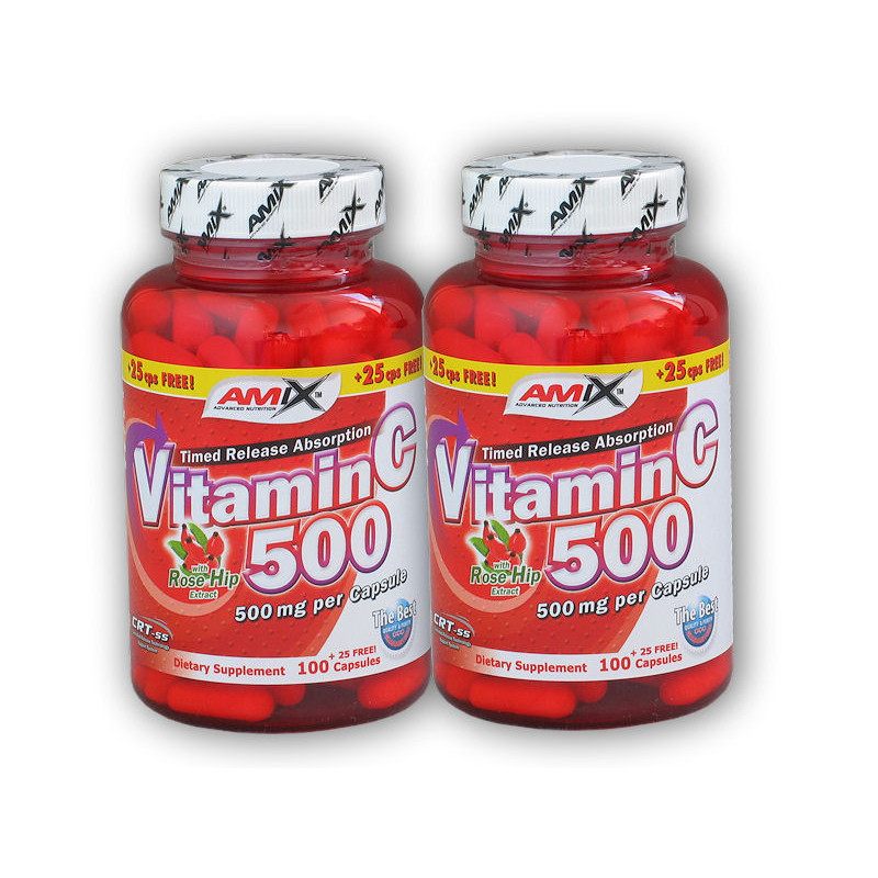 Zloženie: Kyselina askorbová, dextróza, želatínová kapsula (želatína, voda, farba uhličitanu vápenatého), extrakt z šípkov, stabilizátor: hydroxypropylmetylcelulóza (Methocel®), prostriedky proti zlepeniu: stearát horečnatý, oxid kremičitý
