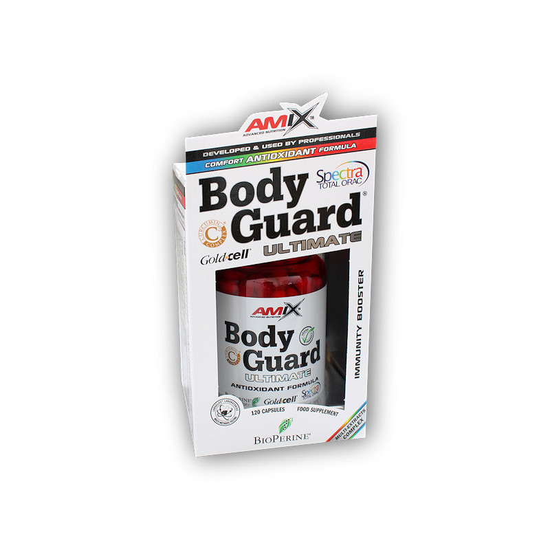 AmixTM BodyGuard® Ultimate je potravinový doplnok zložený z viacerých antioxidantov a bunkovo chránených látok, ktoré podporujú vašu imunitu, najmä počas období vysokej fyzickej výkonnosti alebo intenzívnej práce. Základom vzorca je N-acetyl-L-cysteín obohatený o komplex ďalších látok, ktoré prispievajú k ochrane buniek pred oxidačným stresom, podporujú normálnu funkciu imunitného systému a prirodzenú obranu.