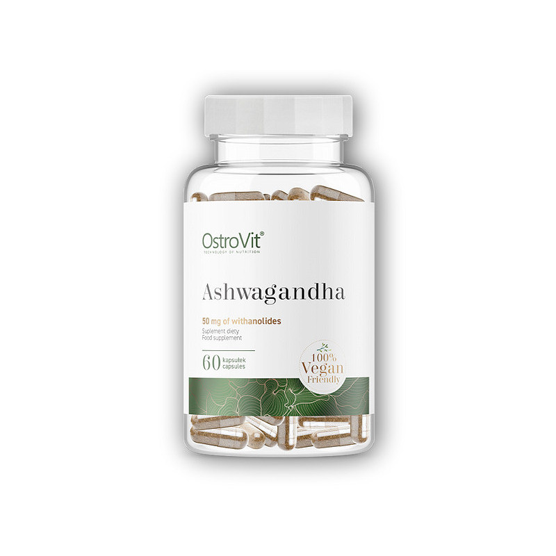 Zloženie: Extrakt z koreňa ashwagandhy (Withania somnifera L.) štandardizovaný na 7,2 % withanolidov, 1 % alkaloidov a 0,25 % vitaferínu A, obal kapsuly (plnivo: hydroxypropylmetylcelulóza).