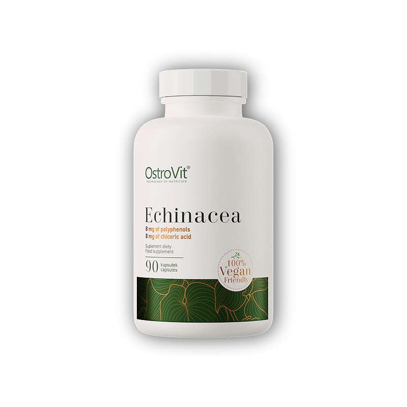 OstroVit Echinacea VEGE je vysoko kvalitný doplnok stravy, ktorý obsahuje extrakt z třapatky fialovej štandardizovaný na 4 % polyfenolov a extrakt z třapatky fialovej štandardizovaný na 4 % kyseliny čakankowej. Ide o vegánsky prípravok, dostupný vo forme ľahko prehĺtateľných kapsúl, vytvorený pre ľudí, ktorí chcú doplniť svoju stravu o cenné zložky.