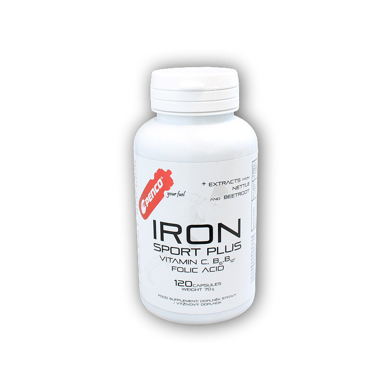 Penco® Iron Sport plus obsahuje synergickú kombináciu chelátovej formy železa, vitamínov a rastlinných extraktov zo žihľavy a červenej repy. Železo podporuje transport kyslíka v tele, funkciu imunitného systému a pomáha znižovať únavu a vyčerpanie. Odporúča sa pre vytrvalostných športovcov.