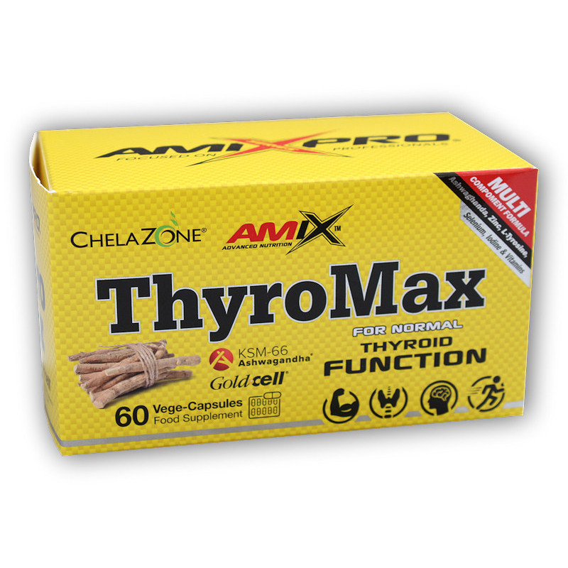 ThyroMAX ako doplnok stravy v rastlinnej kapsule V-Caps® Plus pre normálnu funkciu štítnej žľazy, zníženie stresu a úzkosti, lepšie adaptogénne vlastnosti, duševné zdravie a relaxáciu. Vďaka veľkému množstvu vitamínov a minerálov - jódu a selénu môže prispieť k normálnej funkcii štítnej žľazy.